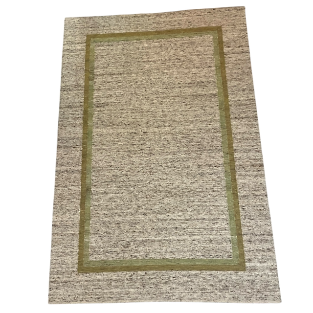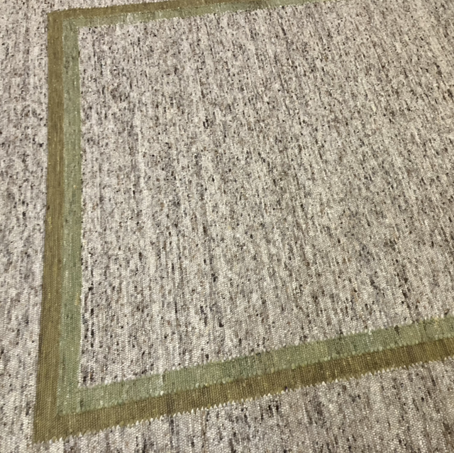 Vékonyabb, de puha gyapjú szőnyeg. Melírozott barnás alapon kétféle zöld keretes minta. Nappaliba, hálószobába ajánljuk. Személyesen megtekinthető a budaörsi szőnyegboltban.