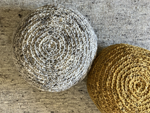 Vastag gyapjú fonalból kézzel horgolt gyapjú puff. Méret: 60 cm.